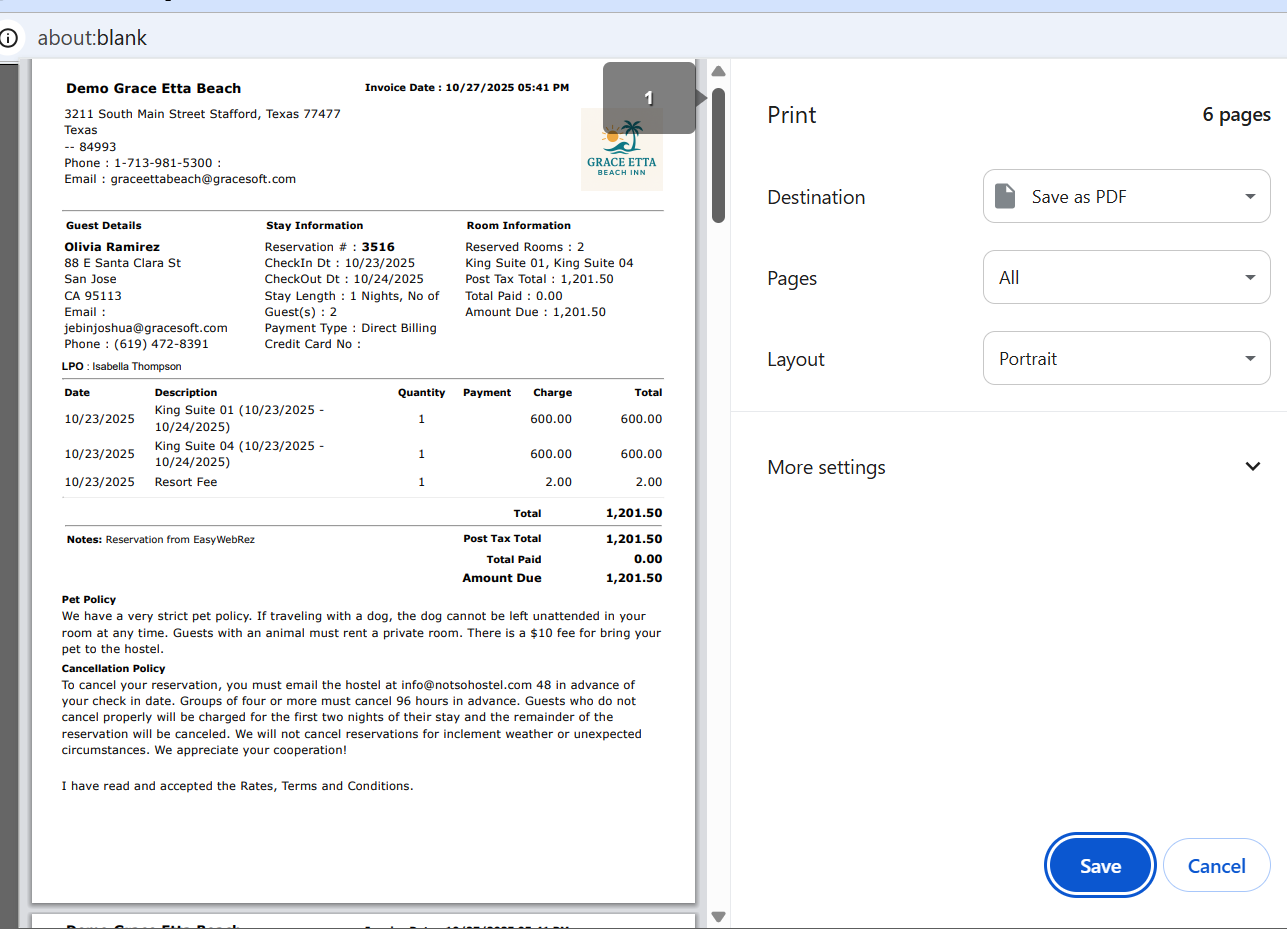 - After saving the reservation, it will generate the unique confirmation number for that booking and it can be viewed under the reservation screen, by finding the data.