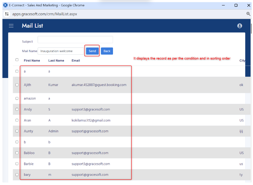 - Please wait while the email is sending, the system will take some time process the bulk email.