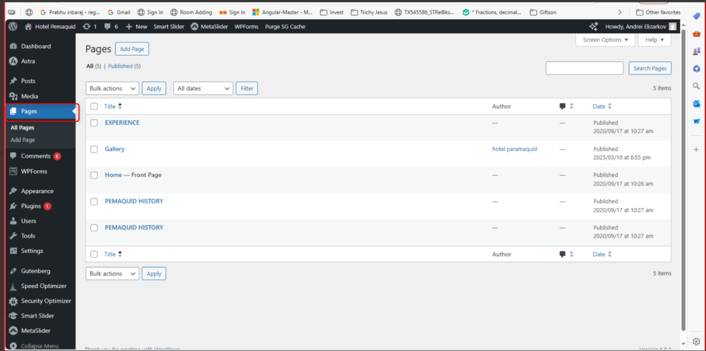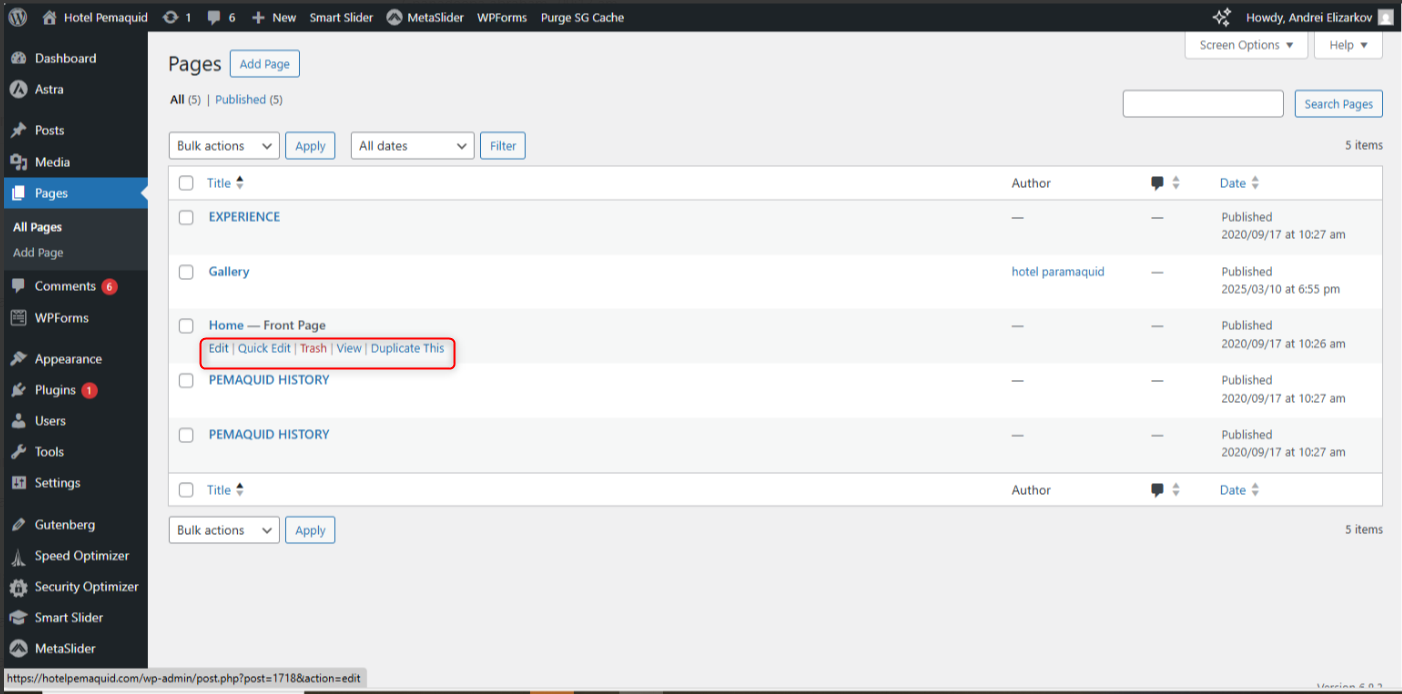 4. When you hover your mouse over any page title, you will see edit options appear.